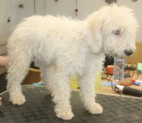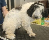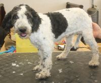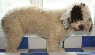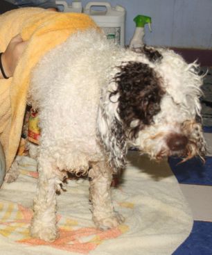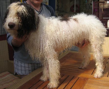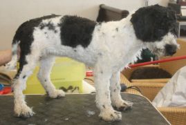 A l'âge de 5 mois il vous faudra IMPERATIVEMENT raser complétement votre chiot , car le perro de agua ne pers pas ses poils il conserve donc son poils de bébé qui ne le protége absolument pas, il ne frisera pas et aura une mauvaise texture ...Par contre veuiller demander au toiletteur de couper la tête et la queue aussi souvent il laisse plus de longueur et ceci est plus que inesthétique ! Préparer vous au choc en photo :