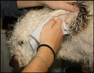 Vous pouvez aussi régulièrement épiler le conduit auditif, mais avant lavage sinon impossible d’attraper les poils cela glissera , l 'épilation aidera à la ventilation naturelle et évitera les otites et les gales …Celle-ci se fera soit avec les doigts soit avec une petite pince a clamper.
